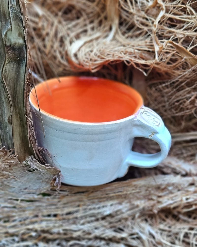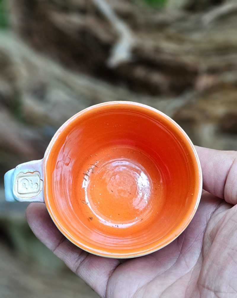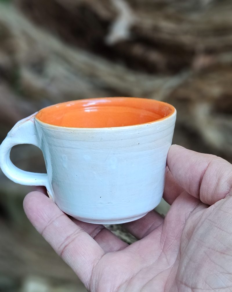 13 November 2023Opaque White and Organge Sorbet. Minimalist handmade Latte, Espresso Cup